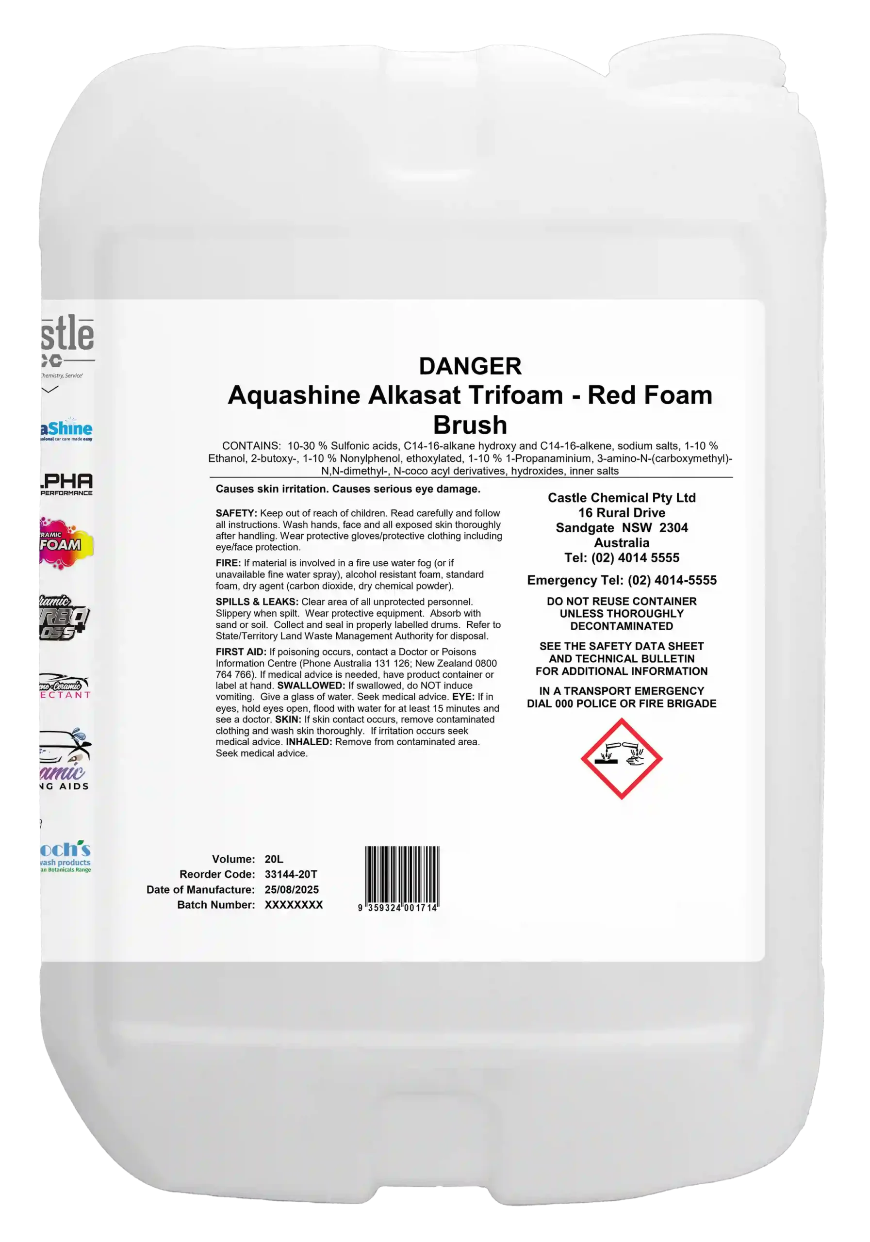 Self serve tri foam ultra concentrate for foaming brush applications. Blended surfactant mix to provide thick rich foams and vibrant colour. To be used in conjunction with Alkasat HSP. High foaming in Lemongrass fragrance.