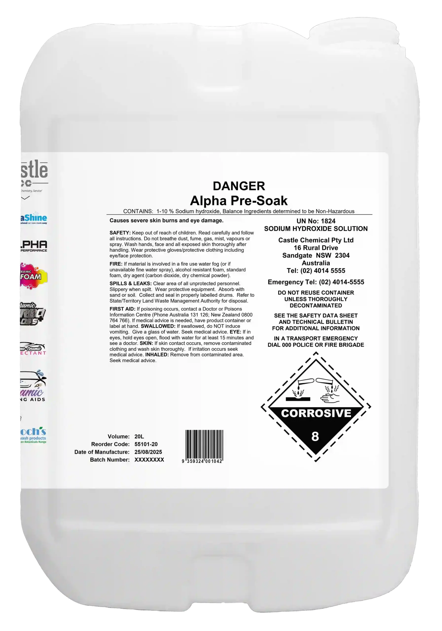 ALPHA PRESOAK introduces the next generation of unique synergistic formula chemistry to provide outstanding cleaning performance not previously seen in Auto Car Wash Applications. This blend of surfactants and lower levels of alkaline boosters-allows the products to be safer on vehicles- safer on equipment – safer for site operators.