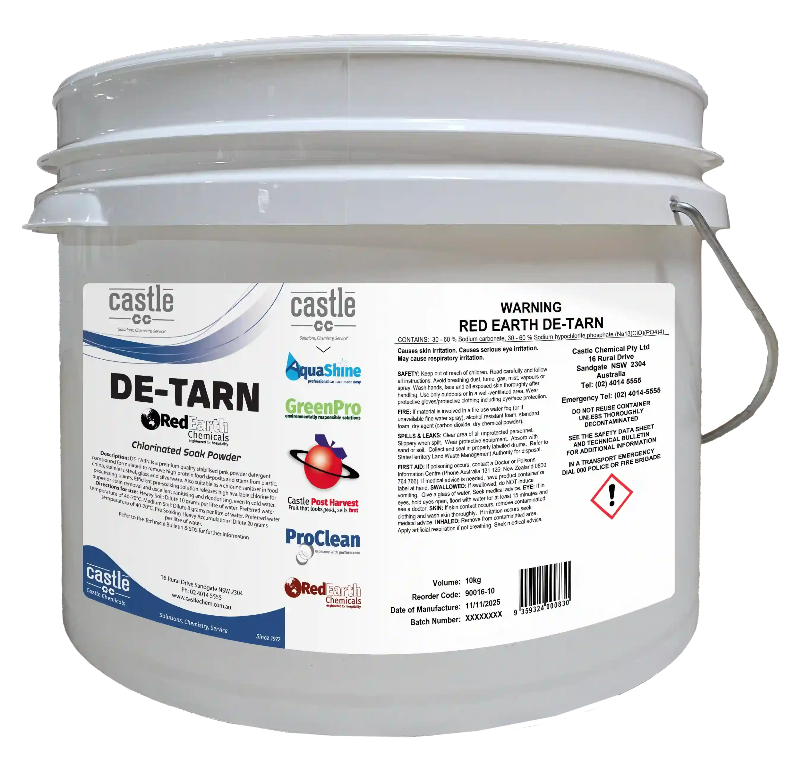D-TARN is a premium quality stabilised pink powder detergent compound formulated to remove high protein food deposits and stains from plastic, china, stainless steel, glass and silverware. Also suitable as a chlorine sanitiser in food processing plants.