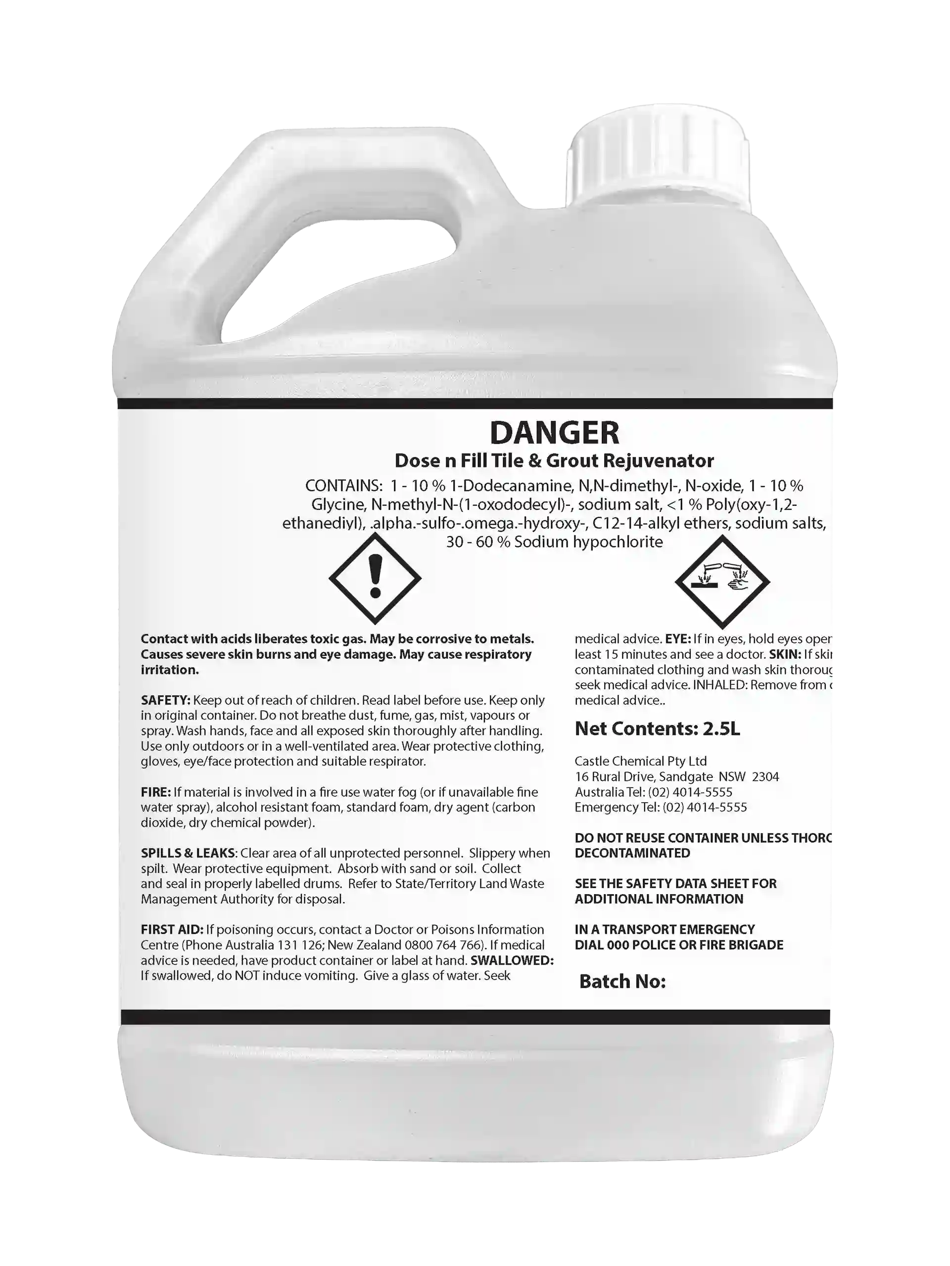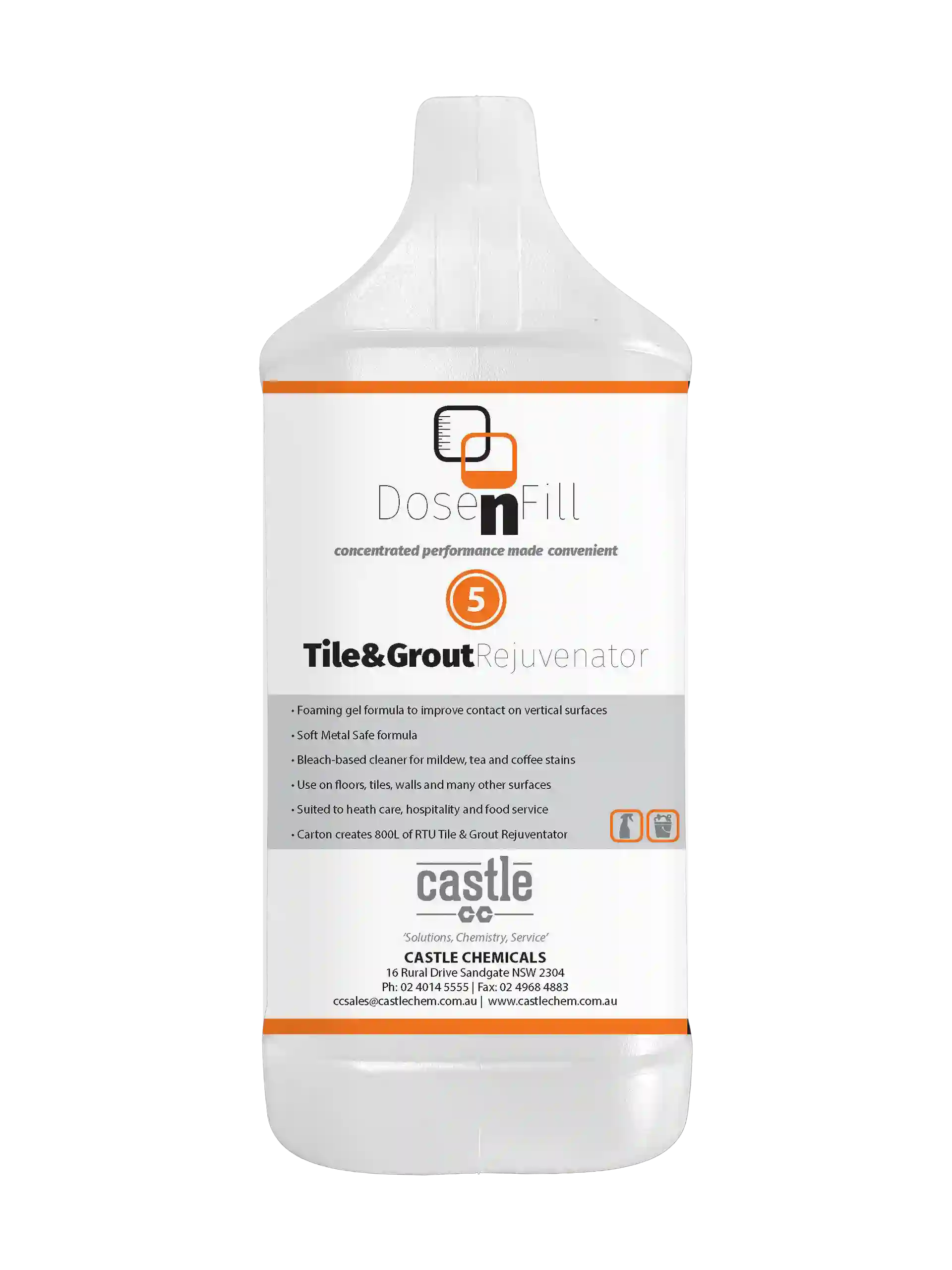 Foaming gel formula improves contact time of vertical surfaces. Bleach-based, soft-metal-safe stain removal liquid. Dilution ratio 1:80 (9mL per 750mL bottle or 125mL per 10L bucket)