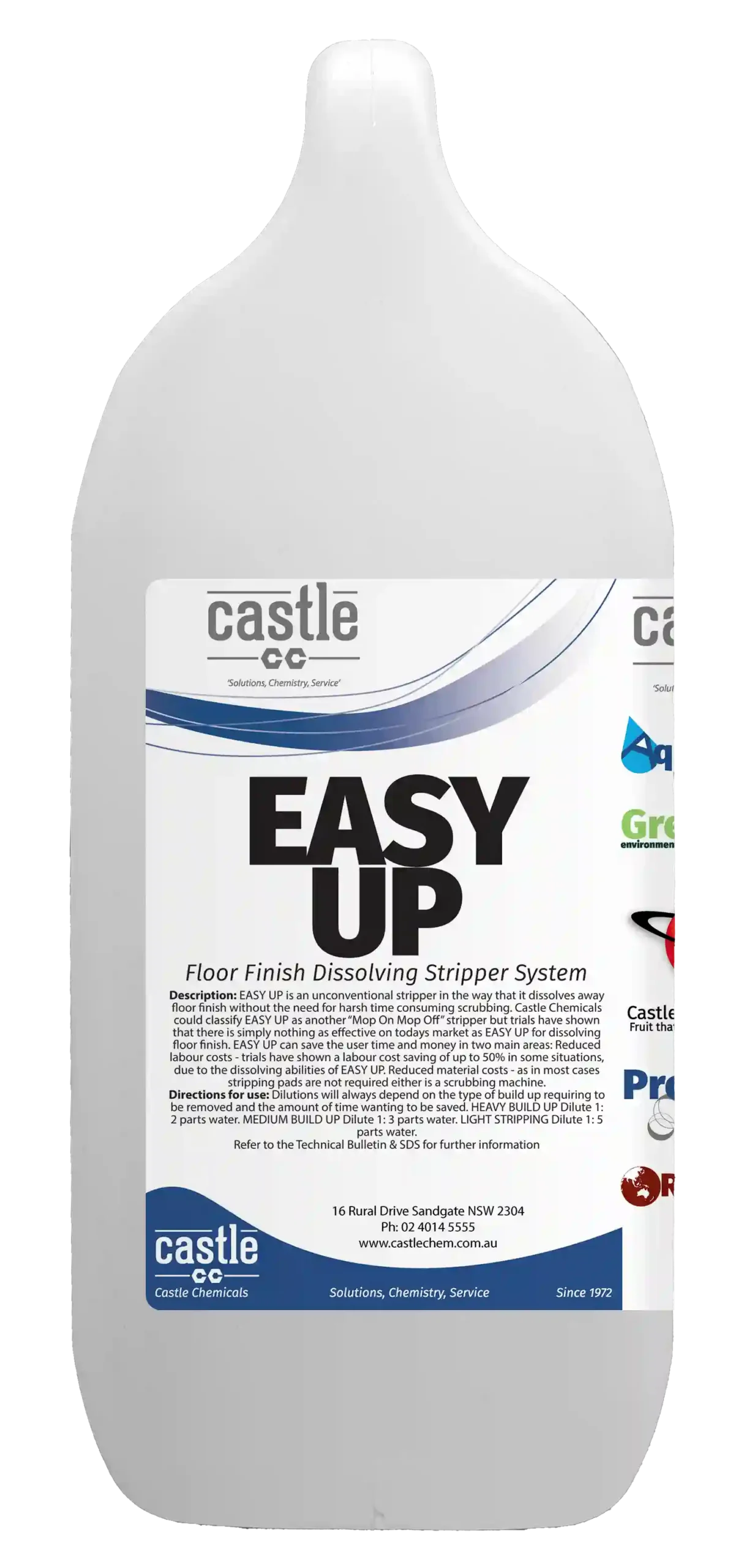 EASY UP is an unconventional stripper in the way that it dissolves away floor finish without the need for harsh time consuming scrubbing.