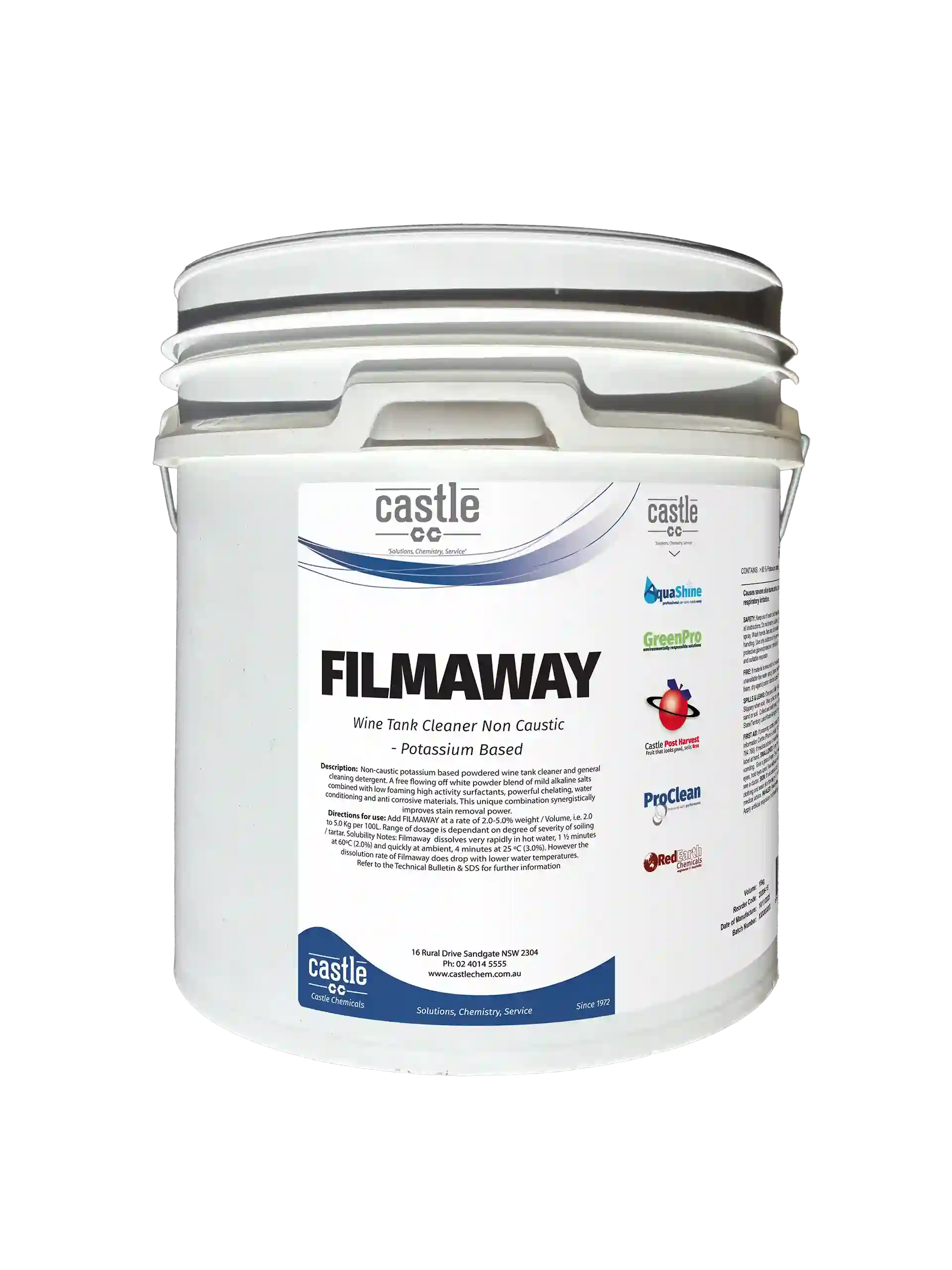 FILM-AWAY is a potassium based powdered wine tank cleaner and general cleaning detergent. FILM-AWAY is specifically formulated for use in wineries requiring sodium free cleaning systems to improve the quality of waste water flow.
