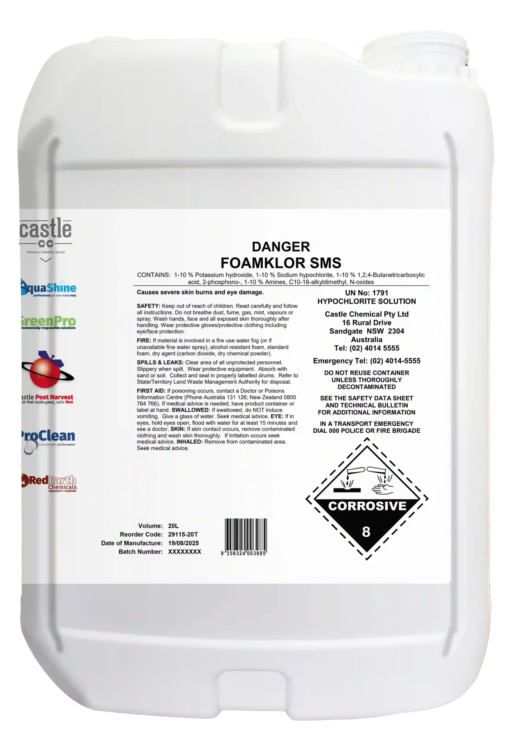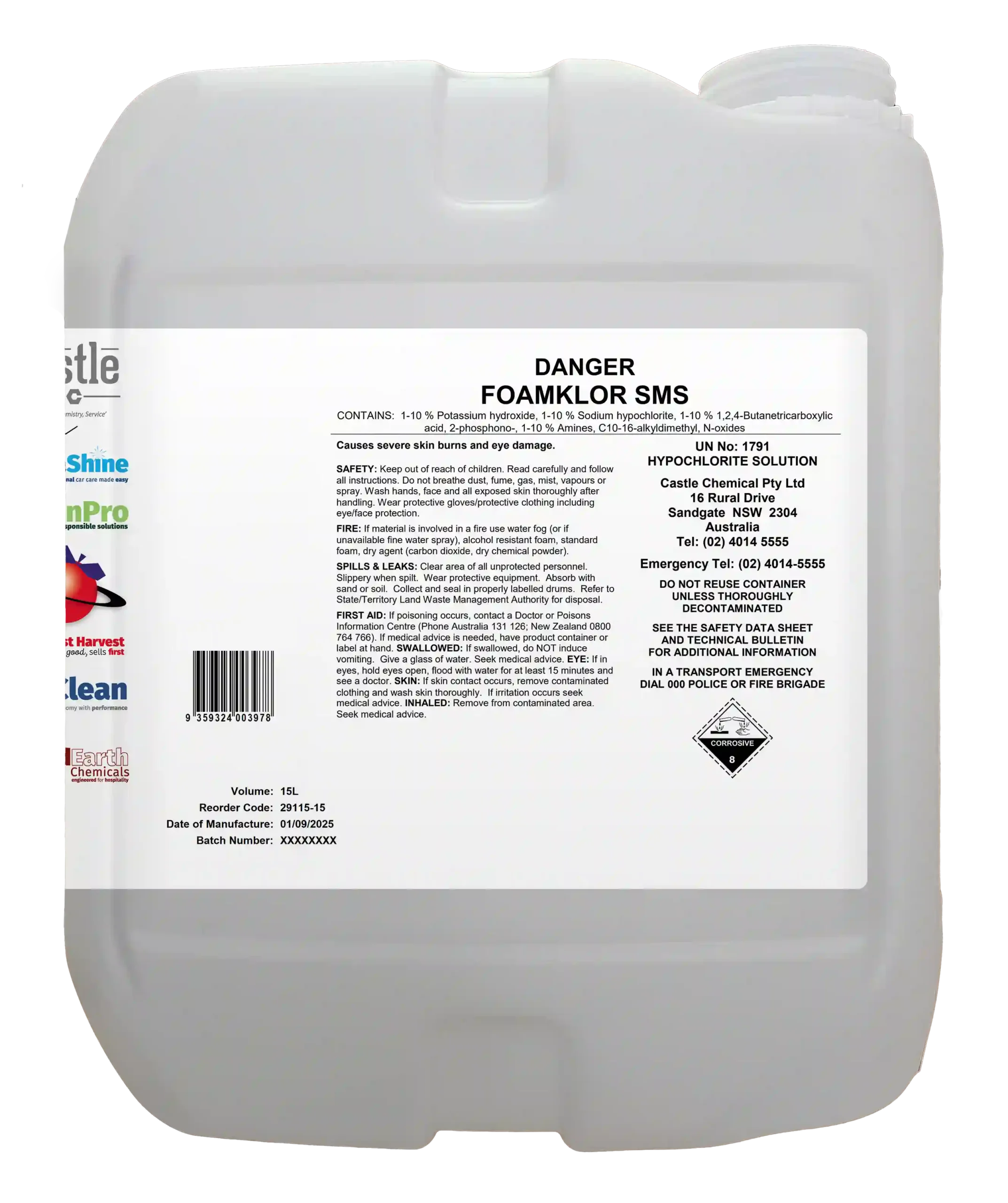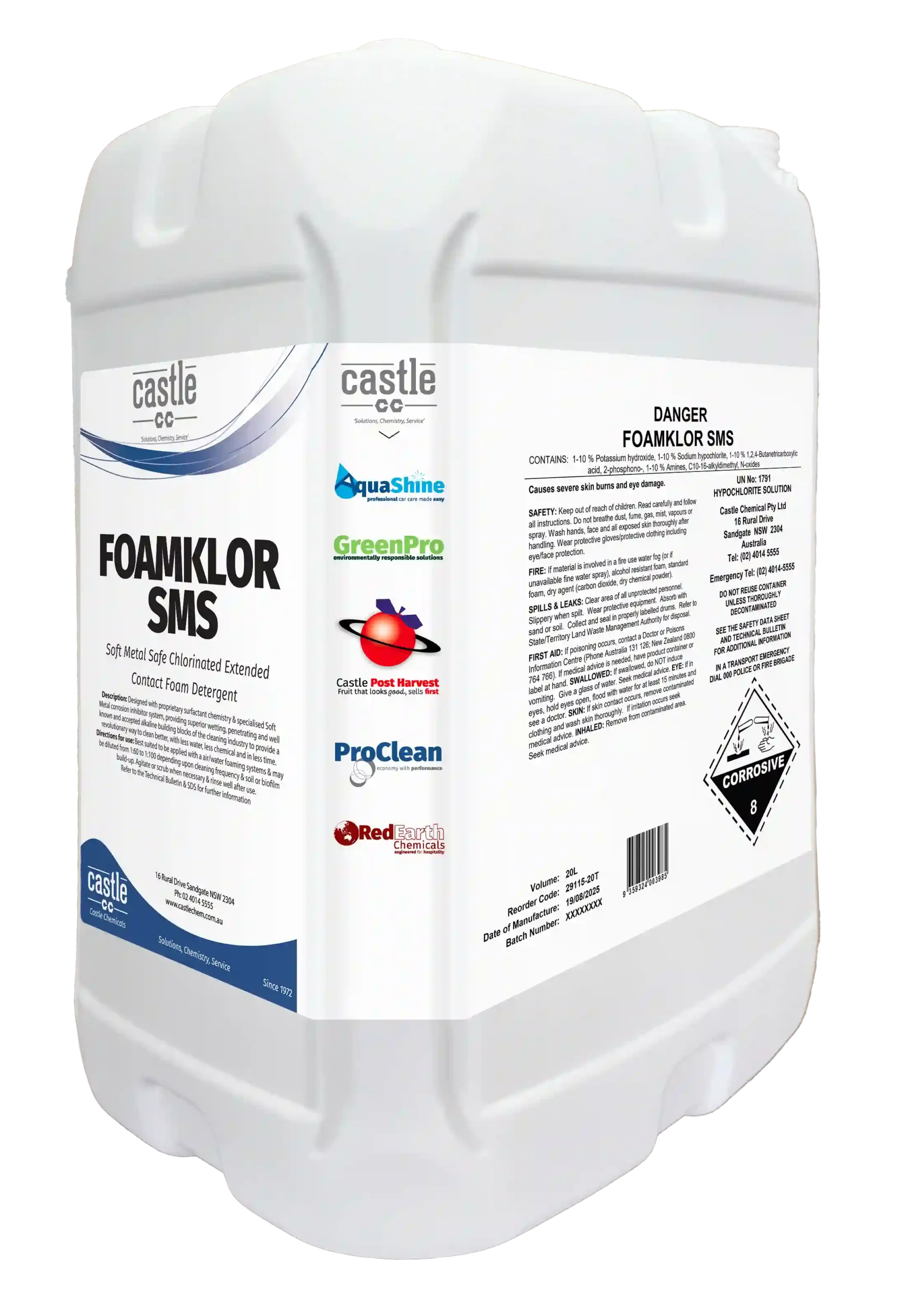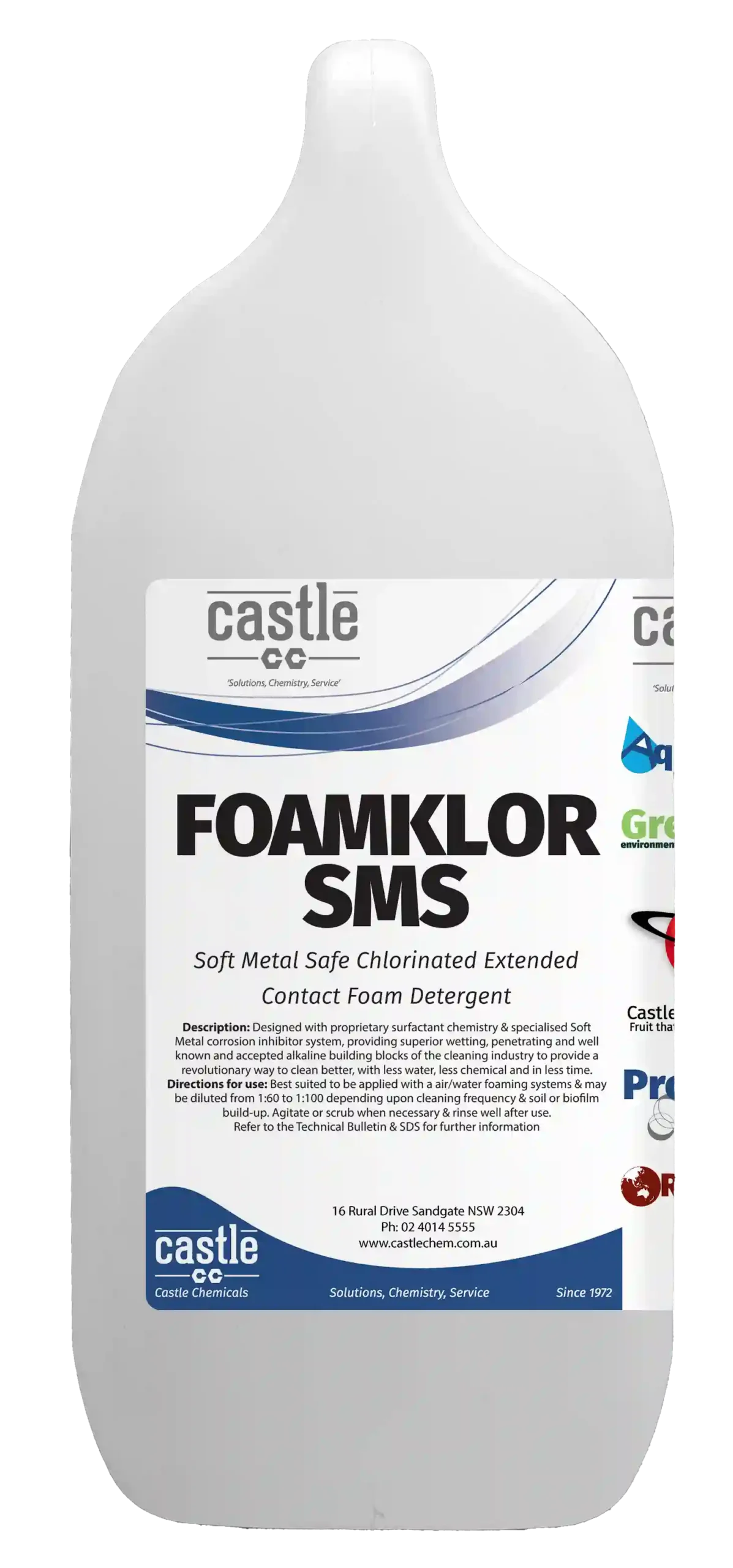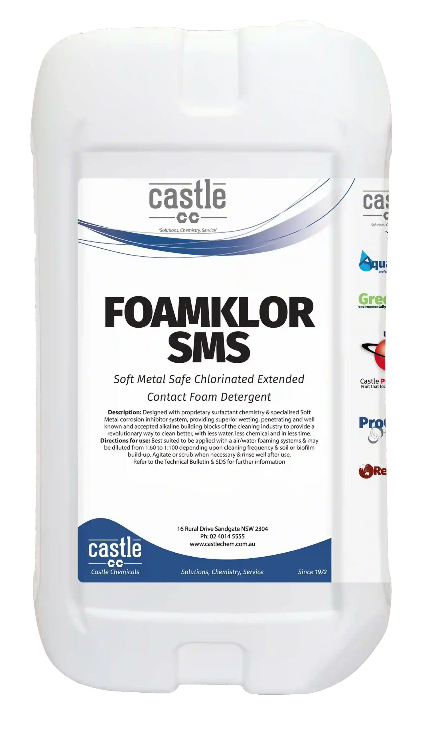FOAMKLOR SMS is best suited to the removal of soils in food and beverage installations, dairies, breweries and red and white meat processing establishments. With its corrosion inhibited formula, FOAMKLOR SMS can be used as an ‘all over’ external cleaner, safely foamed over processing equipment, walls floors and drains.