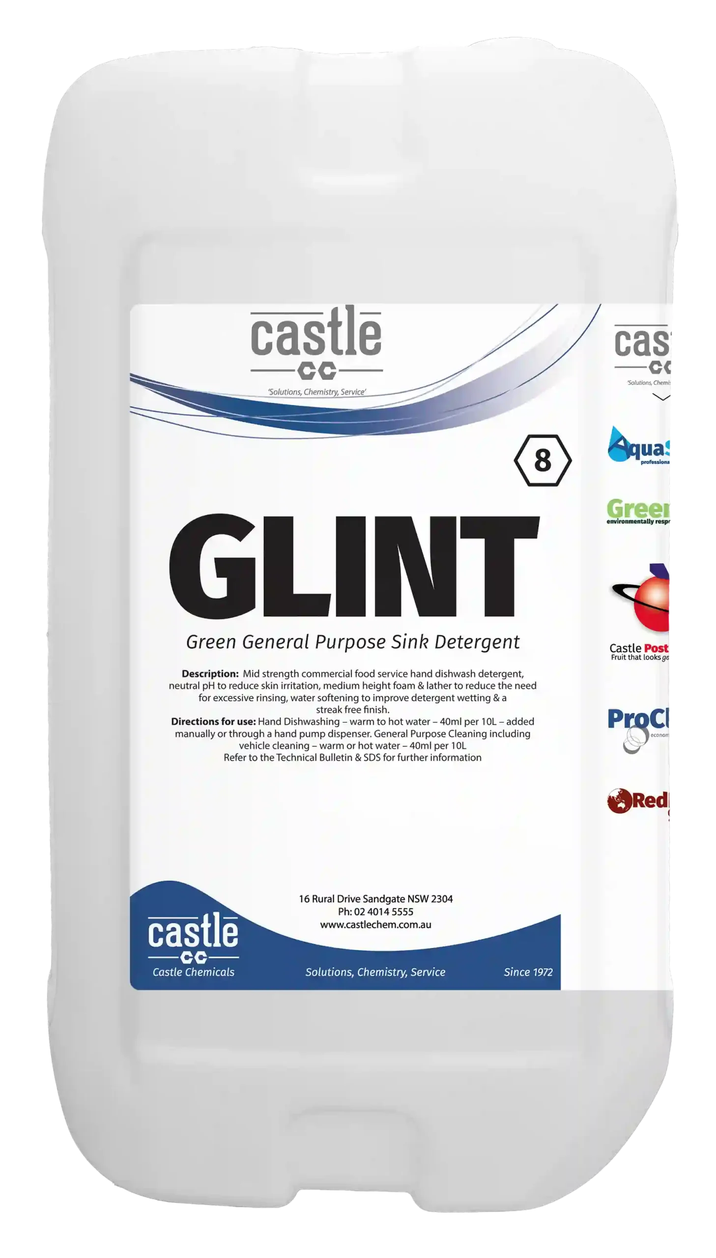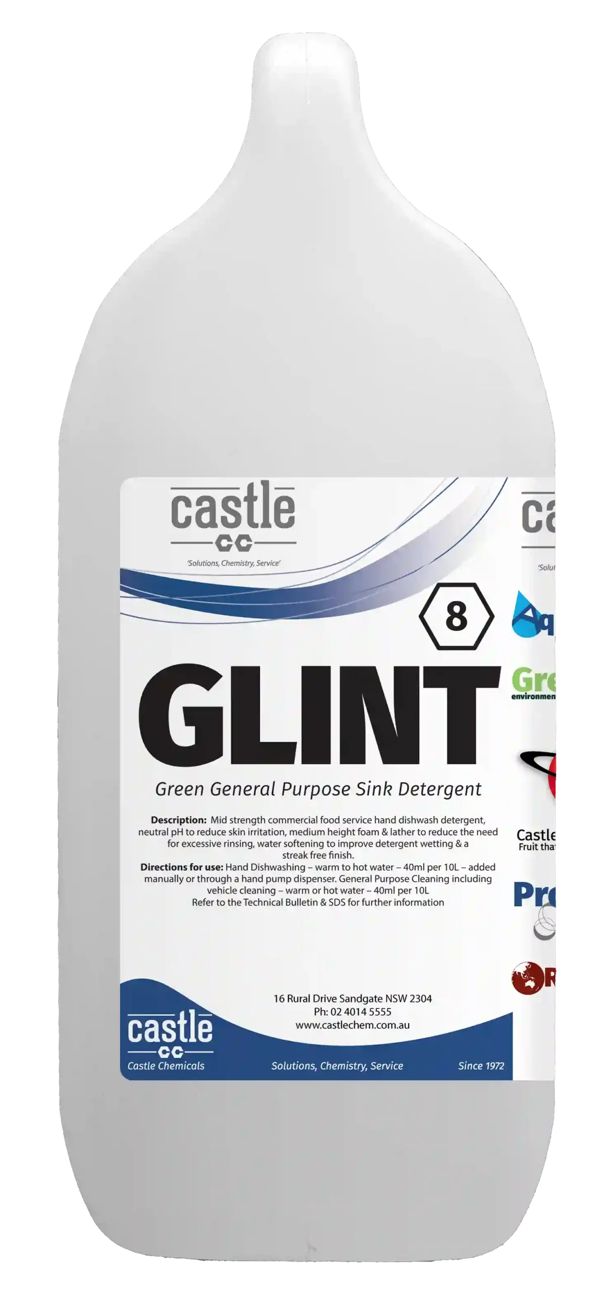 GLINT has been developed specifically as a dishwashing detergent and possesses excellent cleaning properties. It maintains lather throughout the washing up without development of greasy scum in the sink. GLINT maintains its cleaning properties in the hardest of waters.