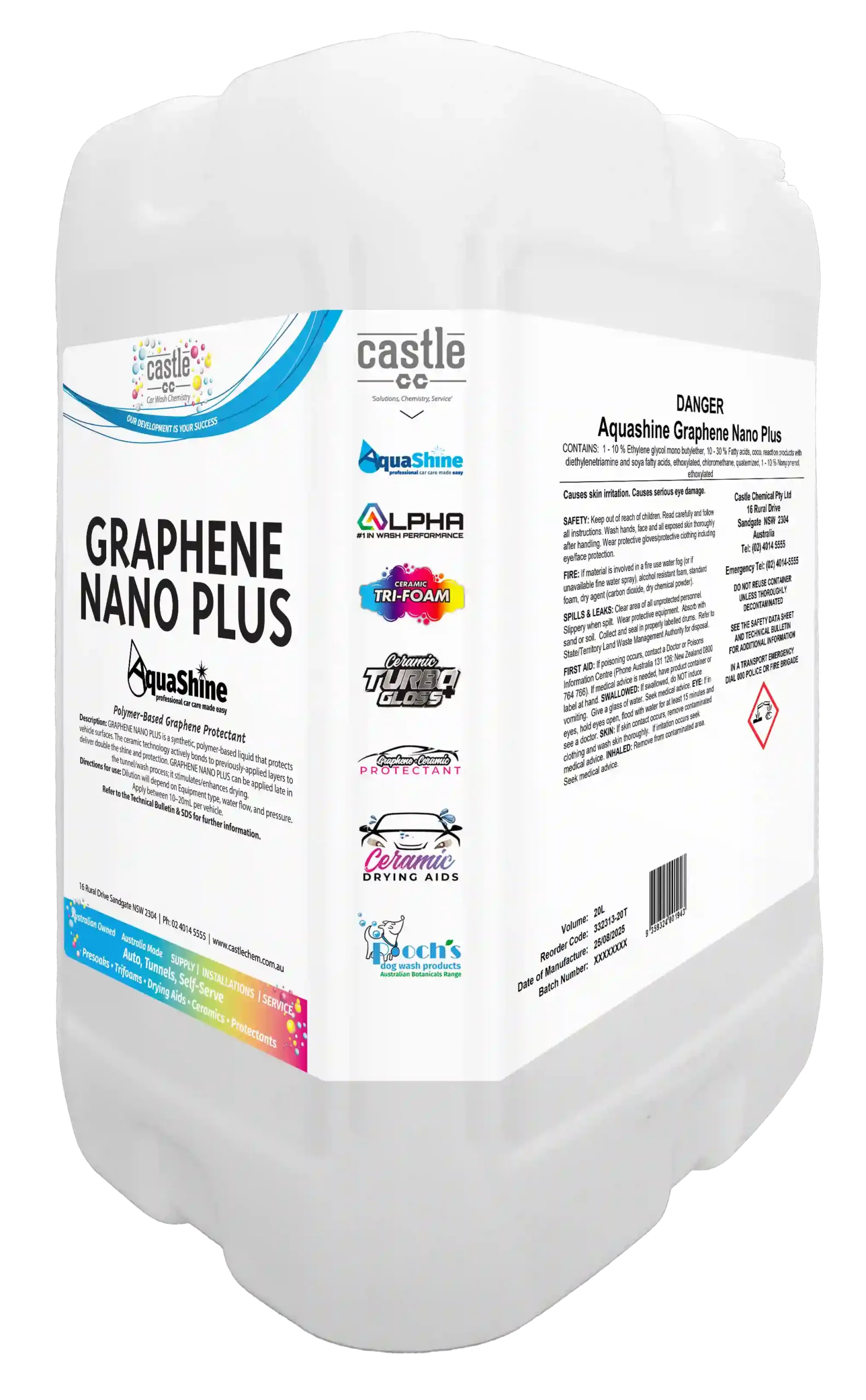 Graphene Nano Plus is a synthetic, polymer-based liquid that protects vehicle surfaces.