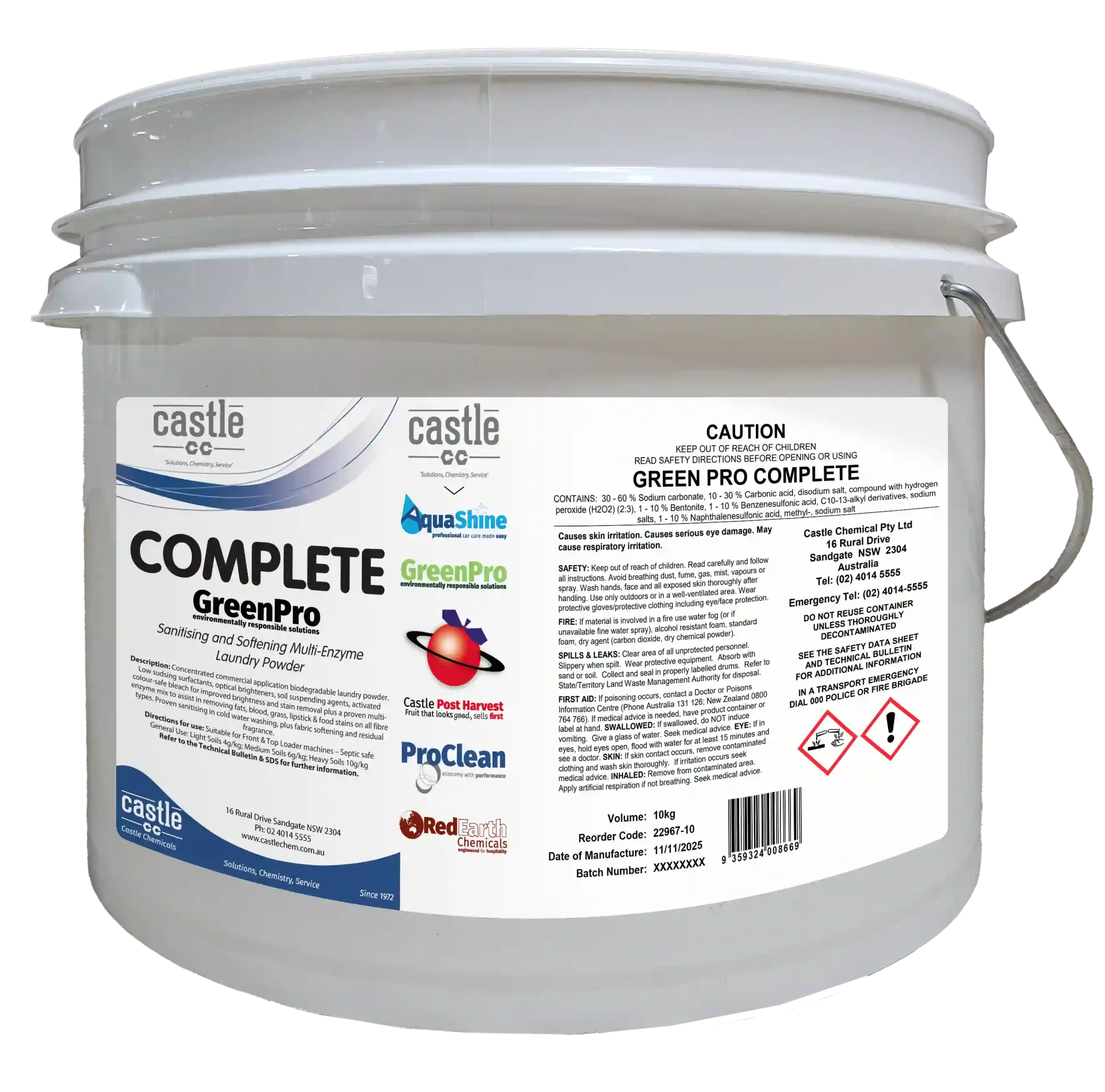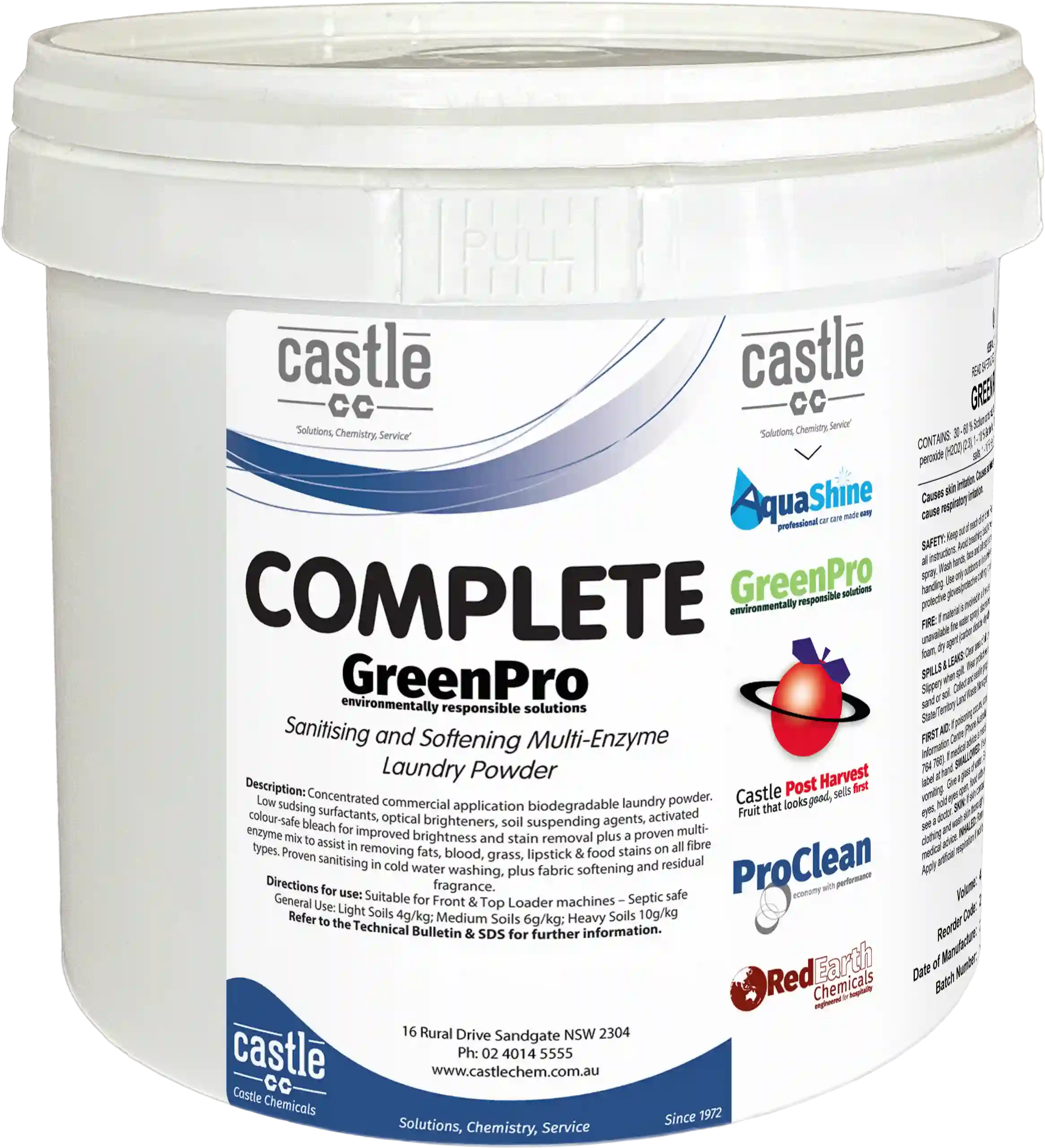 Concentrated commercial application biodegradable laundry powder. Low sudsing surfactants, optical brighteners, soil suspending agents, activated enzyme mix to assist in removing fats, blood, grass, lipstick and food stains on all fibre types.