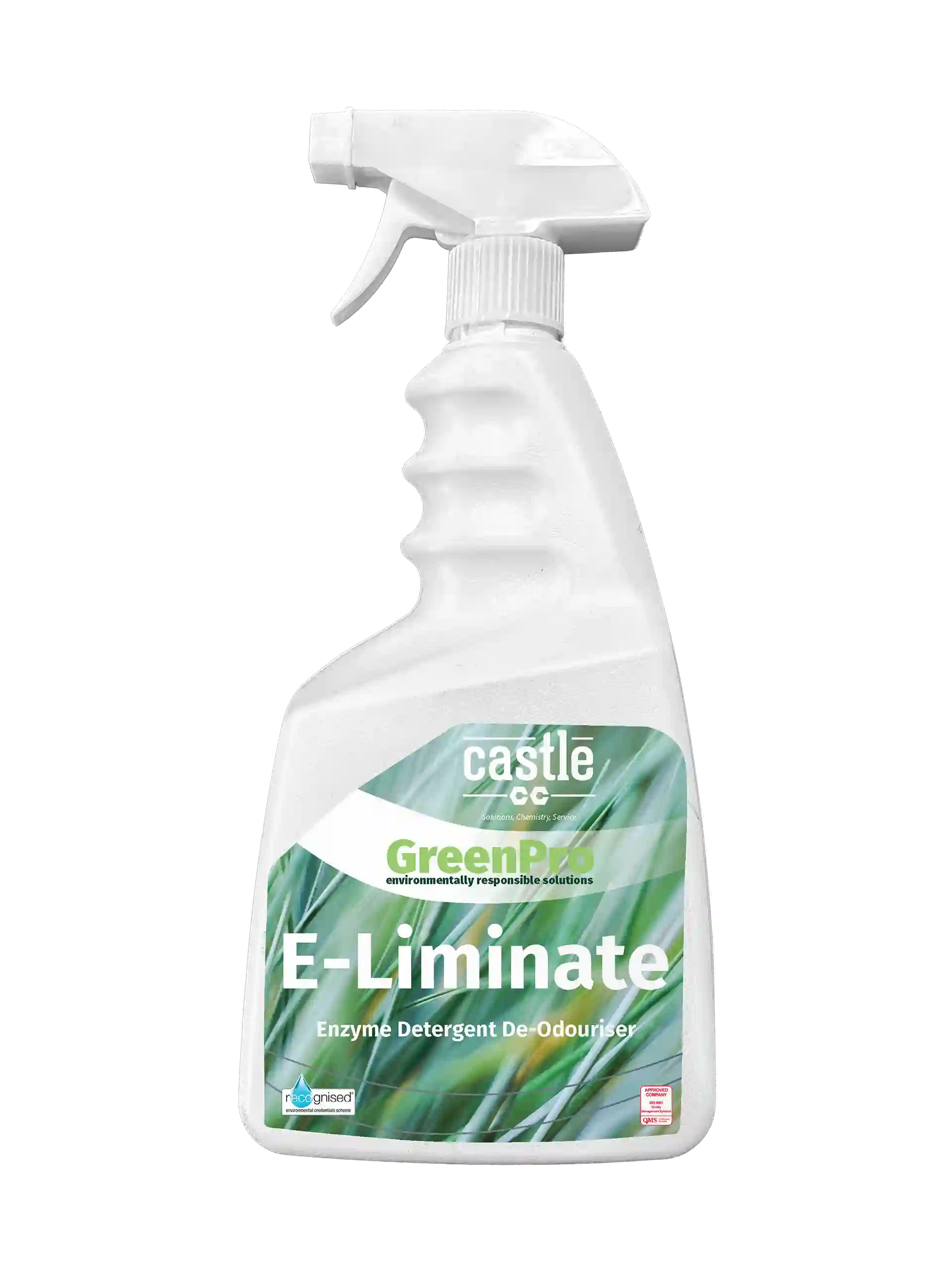 GREENPRO E-LIMINATE has been developed as a specific detergent deodouriser blend containing a selected blend of synthetic enzymes, pleasant fragrance, surfactant and penetrating wetting agents. The unique enzymatic activity of GREENPRO E-LIMINATE detergent deodouriser allows for quick penetration, digestion, and removal of the toughest urine soils and odours.