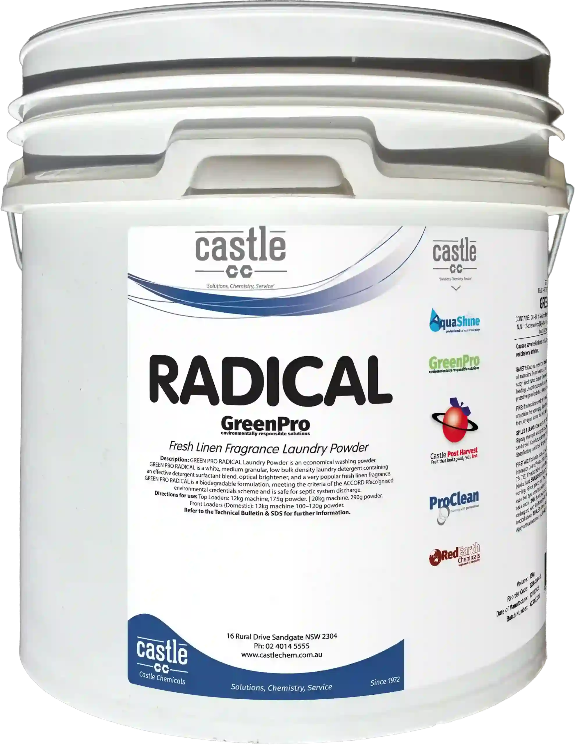 GREEN-PRO RADICAL Laundry Powder is an economical washing powder and is a white, medium granular low bulk density laundry detergent. With a biodegradable formulation containing an effective detergent surfactant blend and optical brightener, Radical has a very popular ‘fresh linen’ fragrance.