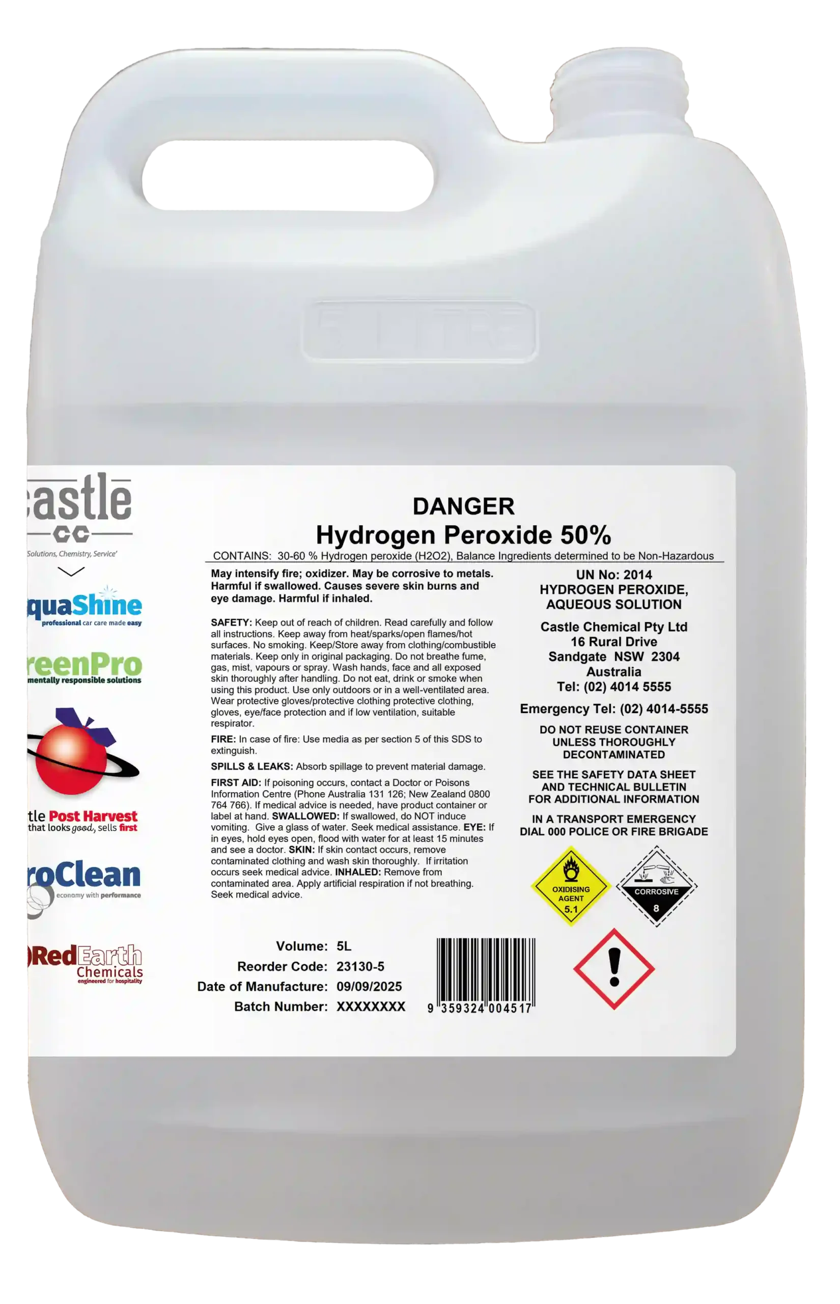 50% Hydrogen Peroxide solution; Interox Aseptic packaging grade.