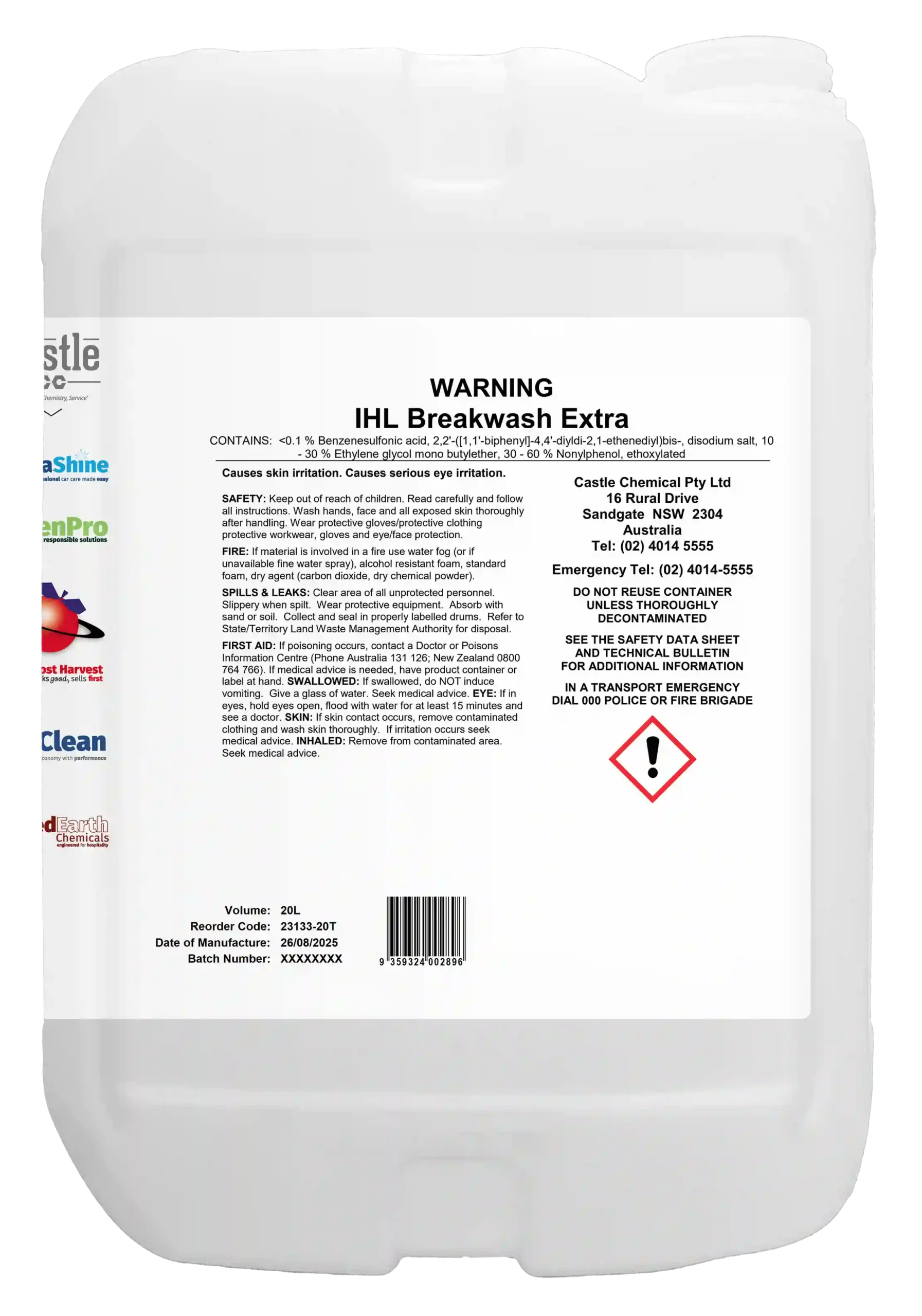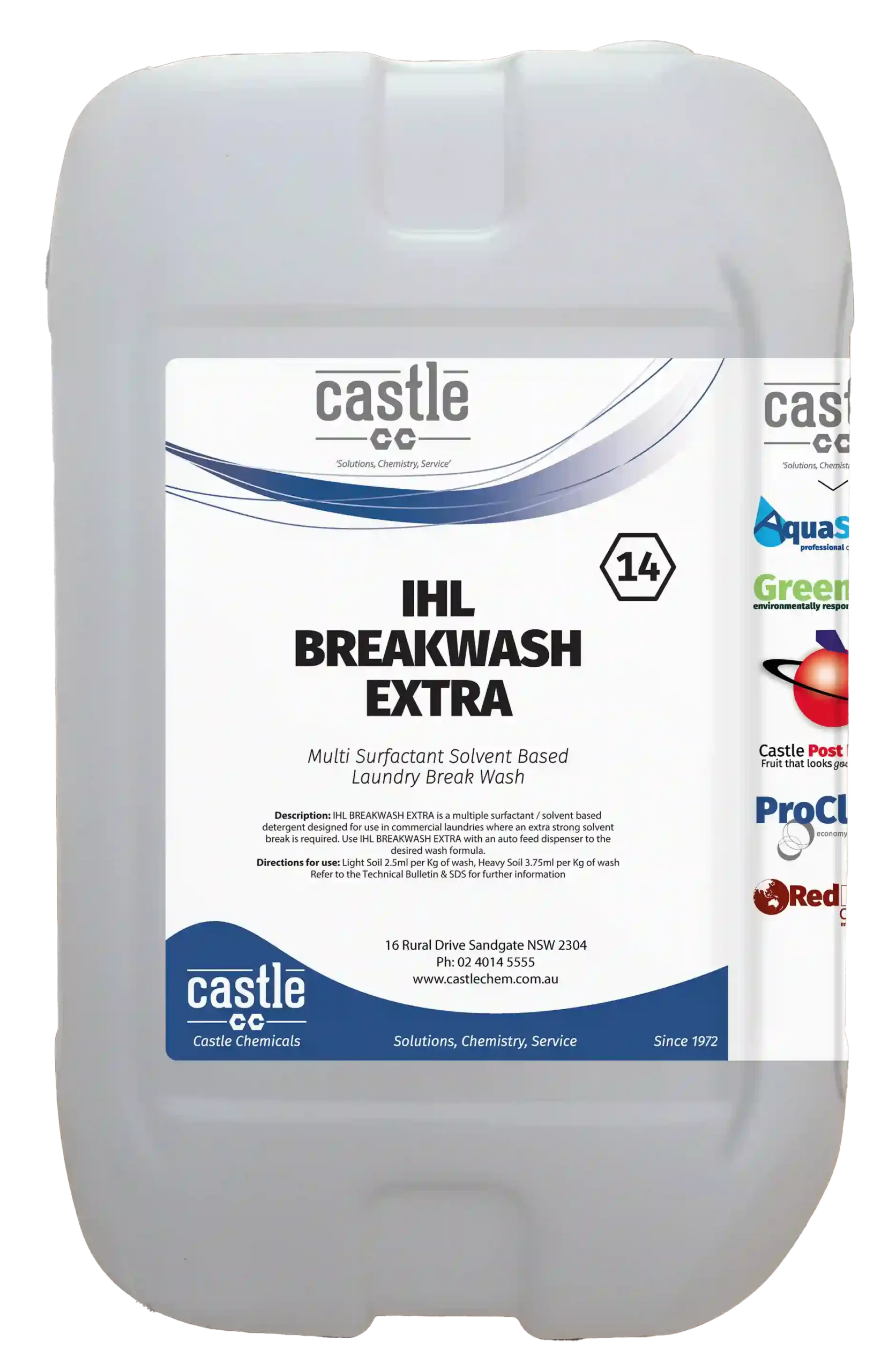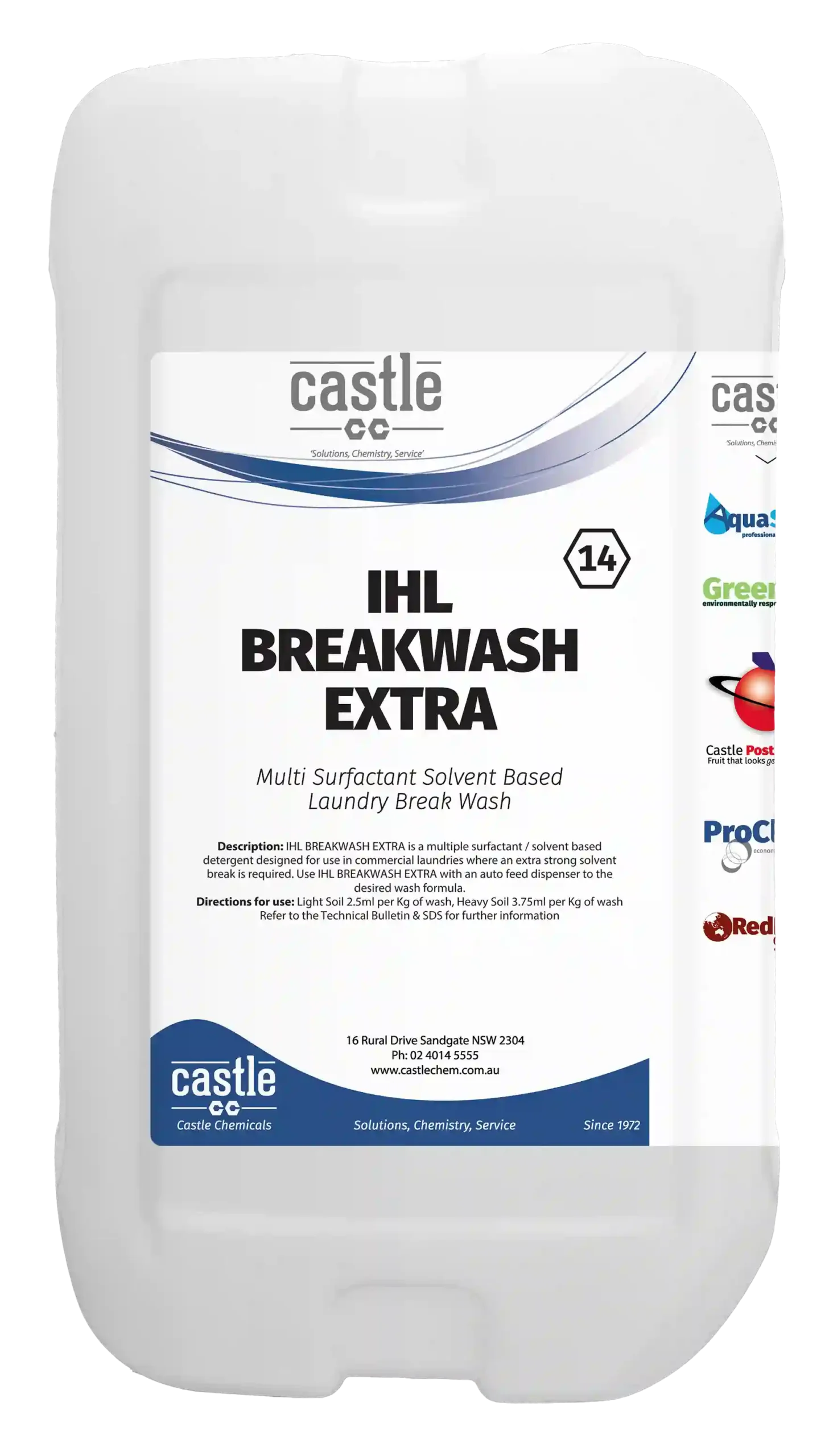 IHL BREAKWASH EXTRA is a multiple surfactant / solvent-based detergent designed for use in commercial laundries where an extra strong solvent emulsifying break is required. IHL BREAKWASH EXTRA contains a synergistic surfactant blend coupled with water soluble solvents to improve fat breakdown & removal of greasy substances, from white or coloured polyester-cotton garments, table linen, greasy shop towels, wipes & overalls.