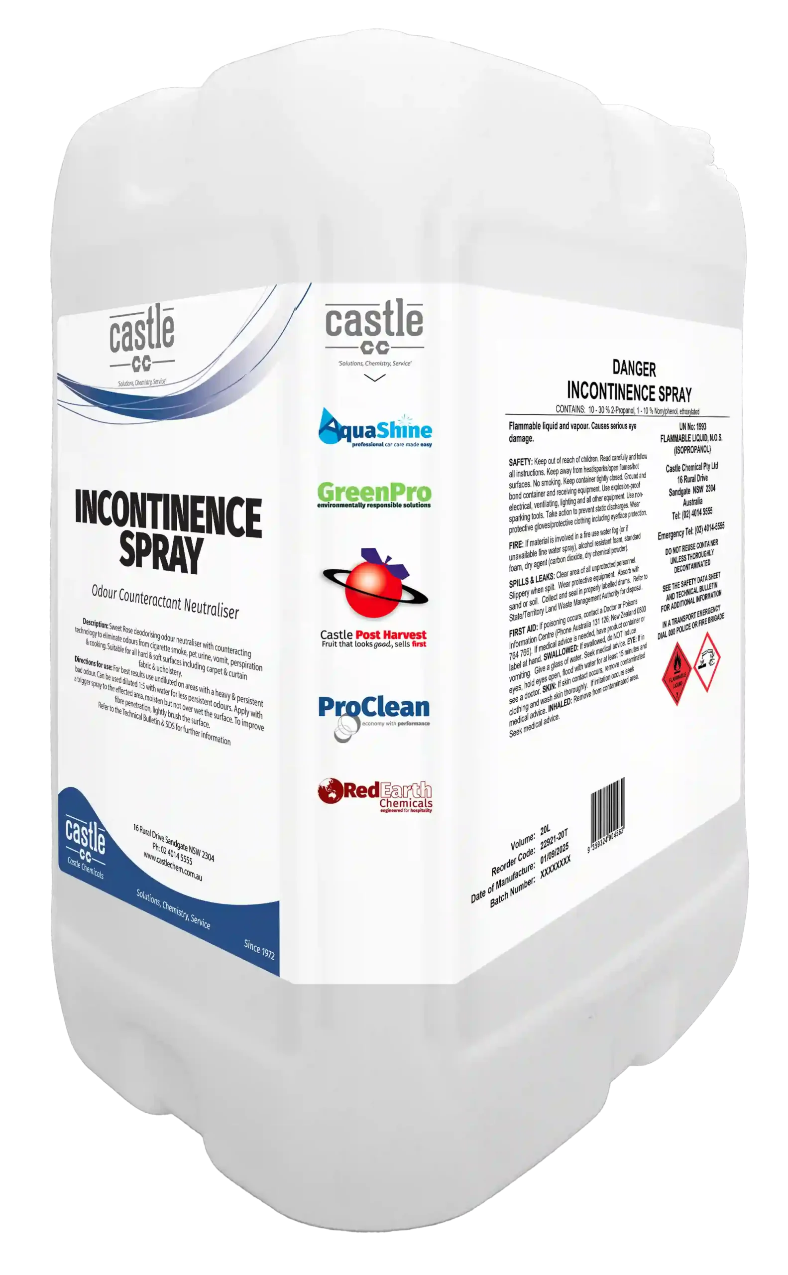 Odour-neutralising aged care fabric & carpet deodoriser/sanitiser – metazine/quaternary.