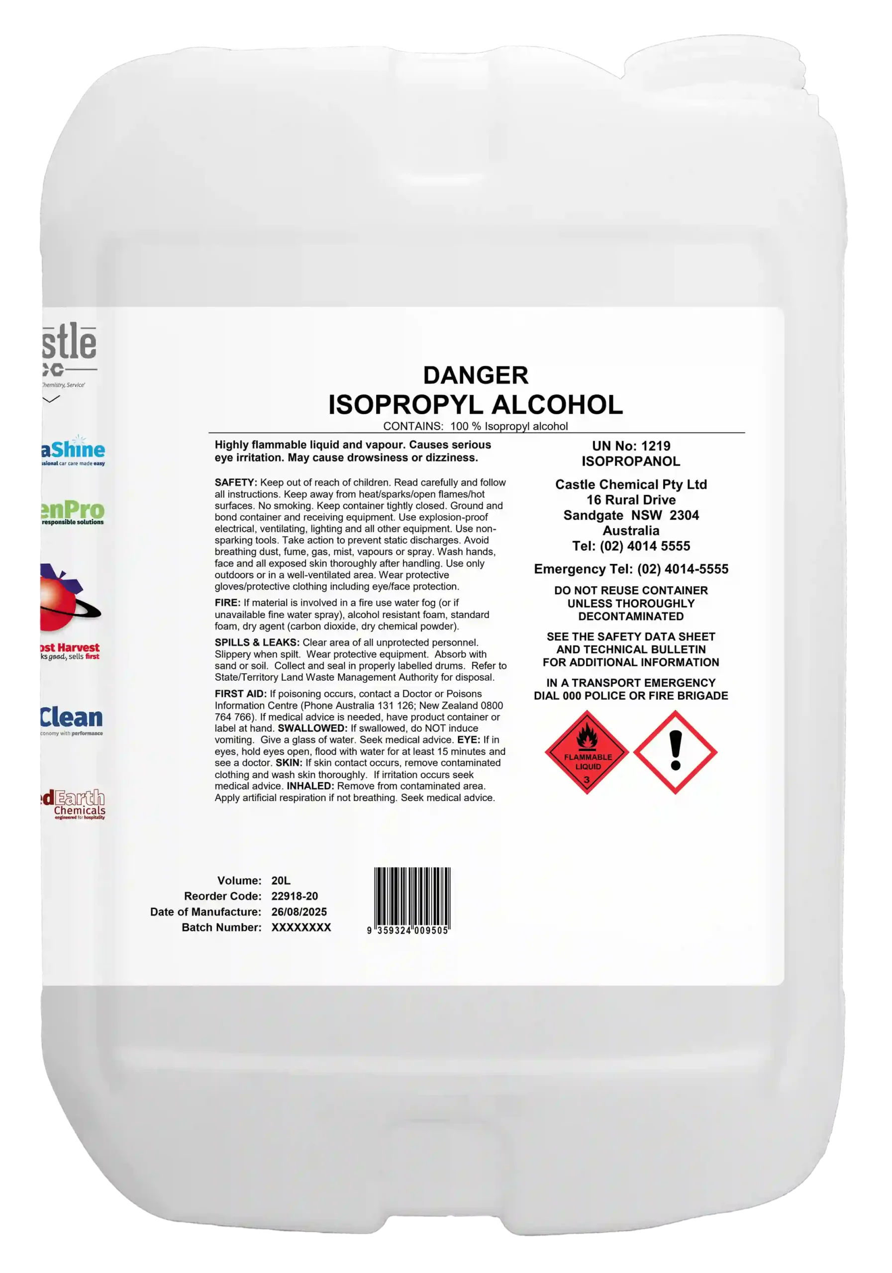 100% Isopropyl Alcohol is an industry recognised surface sanitiser disinfectant. Spray or wipe onto surfaces and leave in contact to allow disinfection action (10 minutes), no need to rinse.
