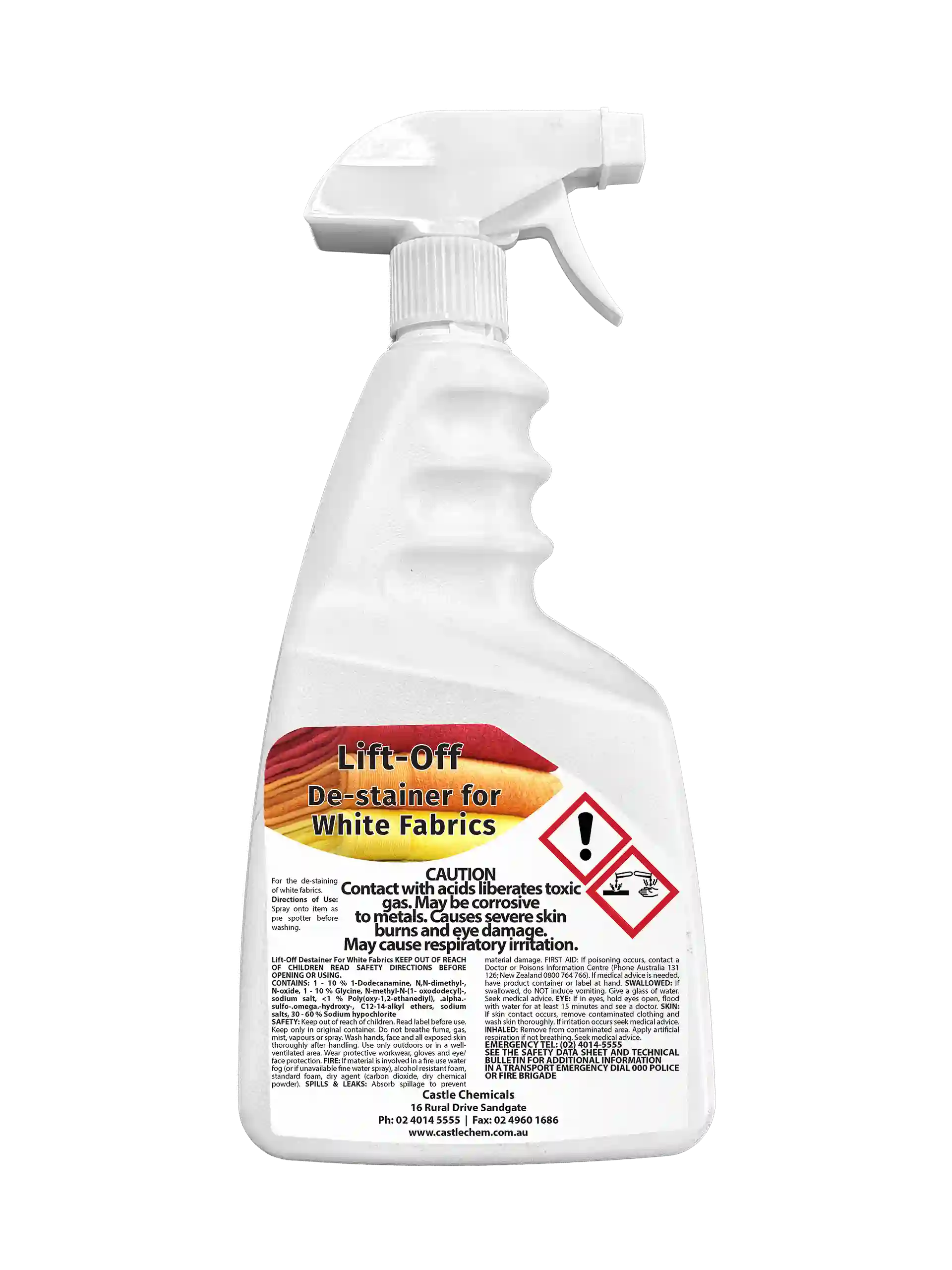 LIFT OFF-DESTAINER Whites is a high performance stain treatment for most chlorine bleachable stains. Effective on Coffee/Tea/Fruit Juice/Mildew. Extend Fabric Life by Improving Stain Removal.