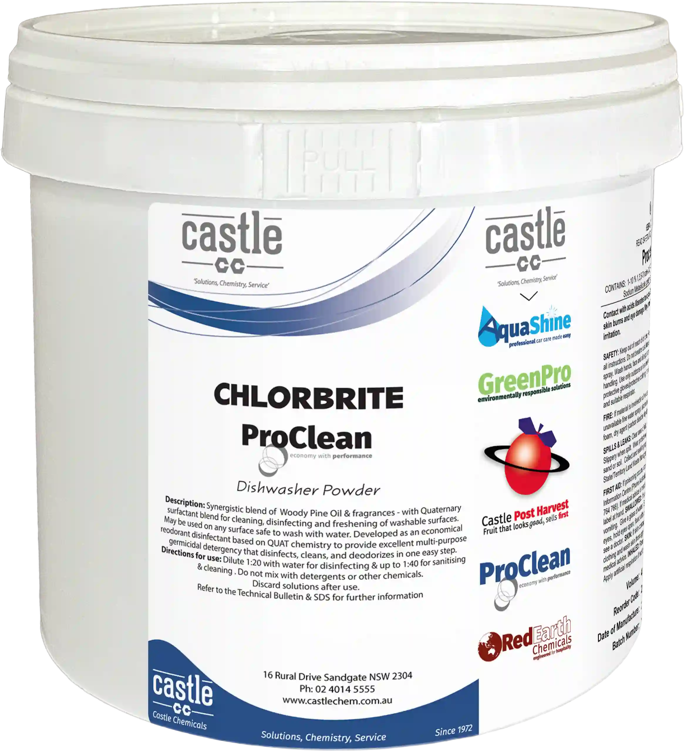 CHLORBRITE is a non-caustic, chlorinated, powdered, mildly alkaline detergent for dishwashers and kitchen sanitising duties.