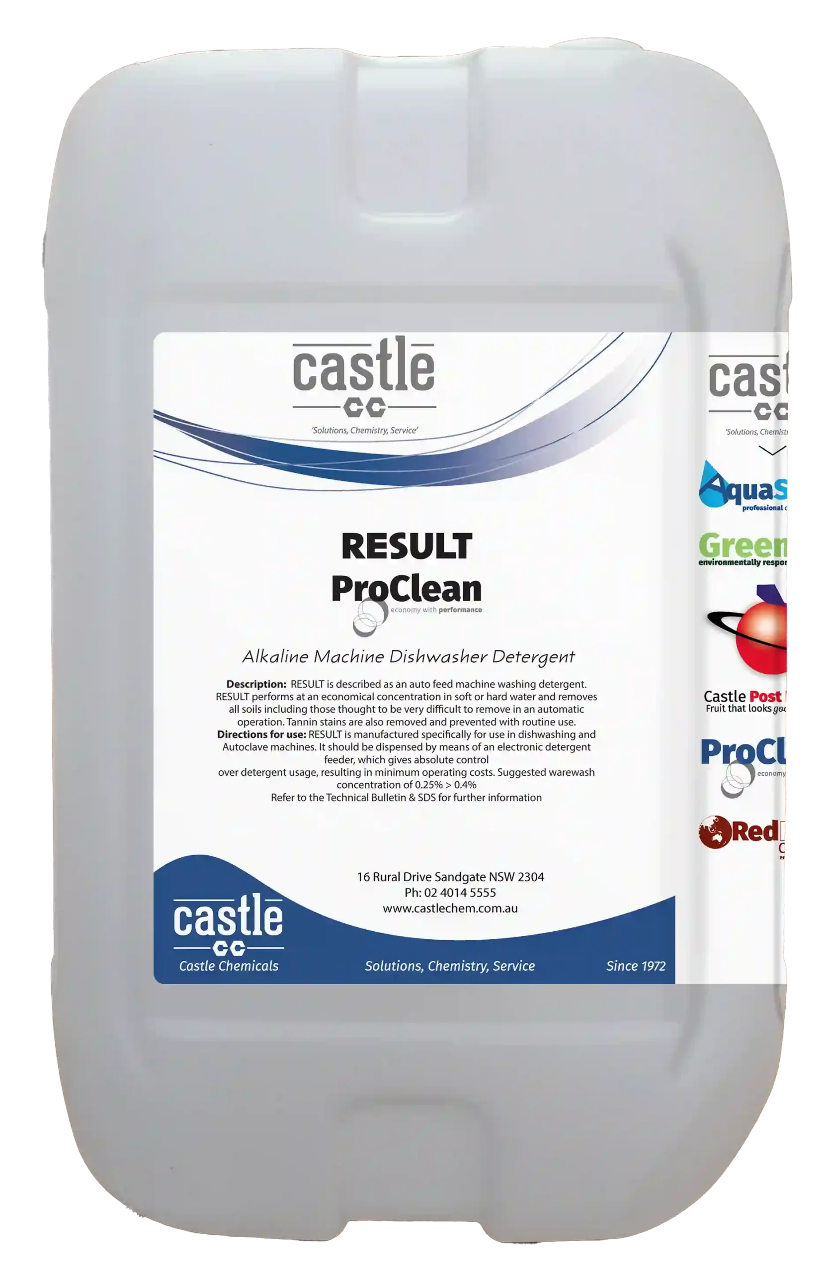RESULT performs at an economical concentration in soft or hard water and removes all soils including those thought to be very difficult to remove in an automatic operation.