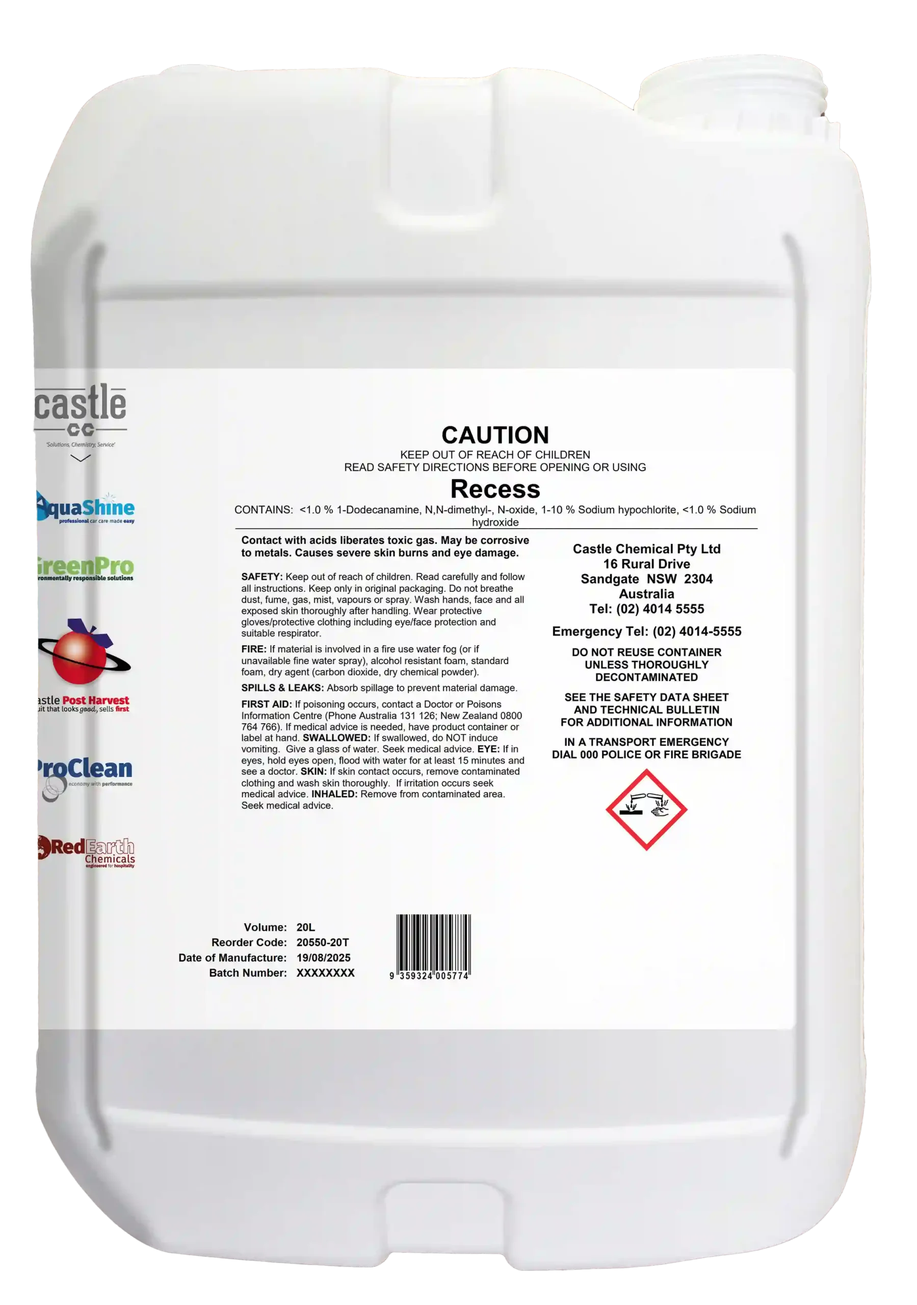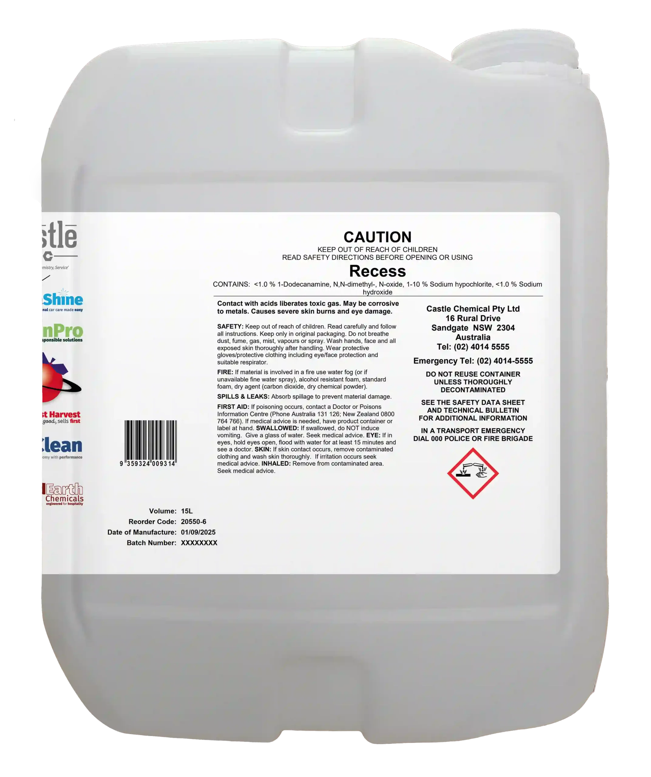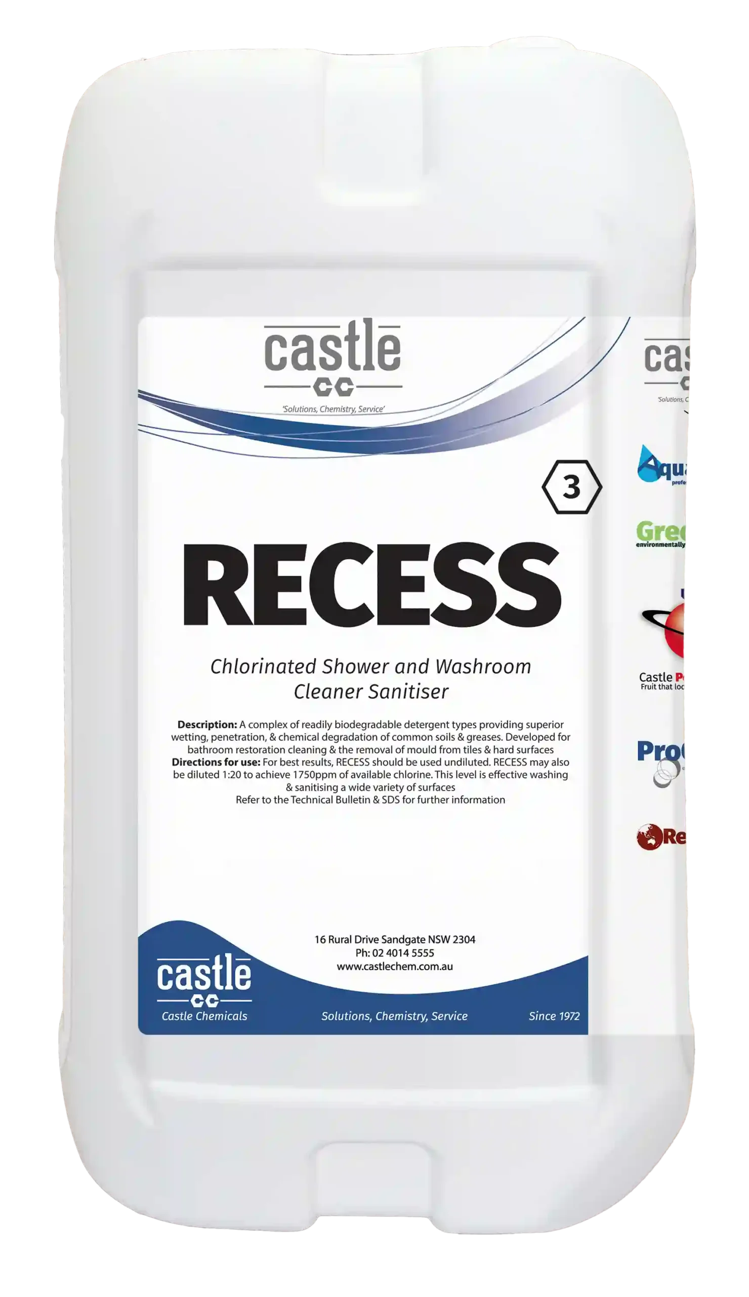 “Domestos style” chlorinated foaming detergent. Designed for shower recess cleaning.
