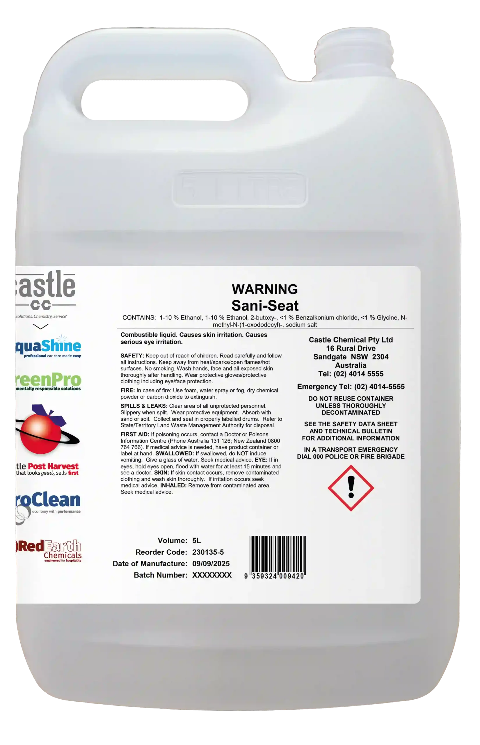 - Use undiluted in toilet‑seat sanitising dispensers across public washrooms, hospitality venues, offices, schools, and transport facilities.