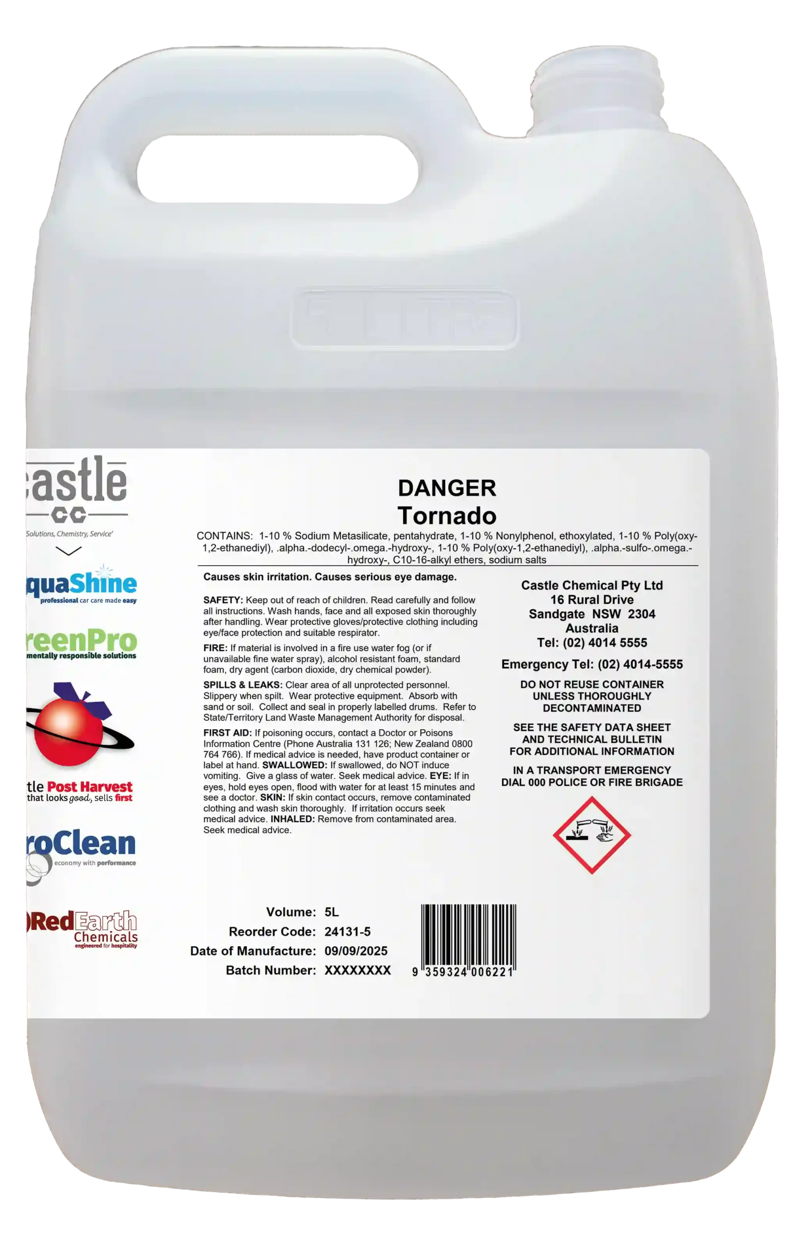 TORNADO is a water clear liquid. It is dilutable with water to form solutions, non-toxic, non-flammable, leaves no after odours, has no fumes.