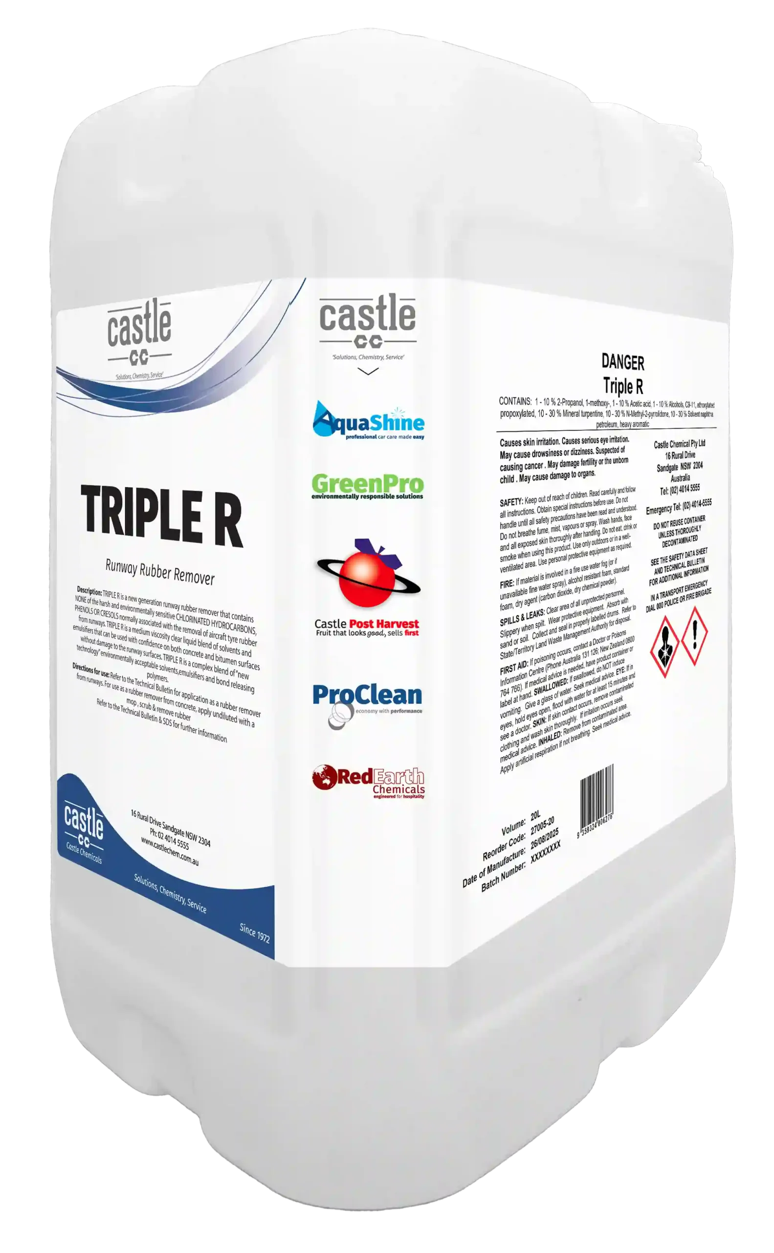 Non-harmful paint and rubber remover. Suitable for concrete and bitumen surfaces and for the removal of aircraft tyre rubber from runways.
